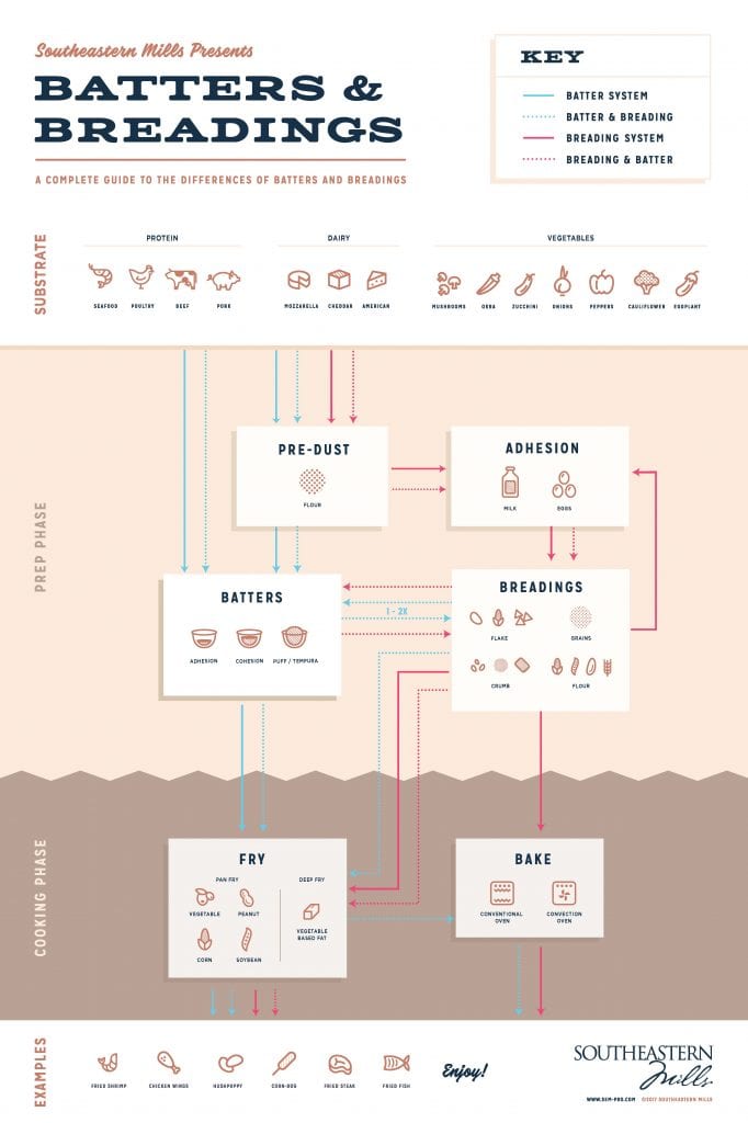 Southeastern Mills is a fourth-generation food company that offers a wide range of ingredient solutions for food processors, foodservice companies, and consumers. They came to us to create a chart that guides their customers in a step-by-step process on how various items can be coated using their breading and batter systems. After doing in-depth research on how foods can be breaded and battered, we created a rough draft of the process. We planned out and sketched where each step was to ensure that we don’t miss anything and found a way to demonstrate a connection with each category. We then worked with our designer to explore creative options on how to best show it creatively. We had drafted options that were print, animation, and interactive which we then presented to the client who chose the interactive chart.